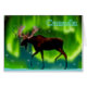 An ever so slightly stylised image of a moose silhouetted against the Northern Lights. Text reading "Canada" appears in glowing blue and white.