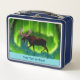 This is a standard metal lunchbox that appears to work just fine. We designed this box ourselves with an uploaded photo and custom text on the front and back. It looks absolutely beautiful except the front of the lunchbox is not centered like it shows in the photo. The print borders don't align with the inset flat part of the box where the preview photo online showed it perfectly centered in there. The back looks nice and centered though.
