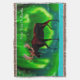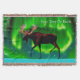 An ever so slightly stylised image of a moose silhouetted against the Northern Lights. Add your own text.