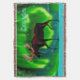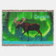 An ever so slightly stylised image of a moose silhouetted against the Northern Lights. Text reading “Canada” appears in glowing blue.