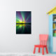 A breathtaking northern lights display over a tranquil lake, reflecting vibrant green and purple hues in the night sky.
