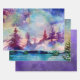Beautiful watercolor collection of the magical shimmering Aurora Borealis - Northern Lights as a set of three wrapping paper sheets.