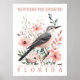 Northern Mockingbird Bird of Florida USA Travel Poster