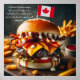 Experience pure Canadian bliss with this Northern Nibbler burger. A juicy beef patty is layered with crispy maple-glazed bacon, sharp cheddar cheese, and a dollop of maple mayo, all nestled in a soft potato bun. A miniature Canadian flag adds a patriotic touch, while a side of poutine completes this authentic Canadian culinary creation.