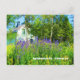 Photograph of a white house and purple flowers in a wild flowers garden on Kjerringoy, an island in northern Norway, north of the Arctic Circle. I took this photo while on a bicycle ride around the area.