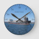 The clock did not take as long to arrive as I thought it might and was extremely well packaged. I didn't do the measurements so I didn't realize it is a little smaller than the average clock but that does not matter (just make sure you check if that's important to you).It is really nifty! It seems very solid and well made not flimsy at all. It has been going well and has kept good time in its few weeks on my wall. Nice product. Gets noticed too! Nicer in real life than the picture but true to the picture