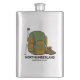 The product is a good size and came exactly as it was pictured. The lid is not attached to the flask, which could be dangerous on drunken nights... The print came out surprisingly well and looks very sharp. Would definitely recommend.