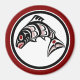 Your fridge will look cool with this round magnet with a beautiful Haida Salmon from British Columbia, Canada. The background is a deep red.