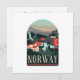 Unique Norway Landscape Vintage artowrk showing a scenery in the scandinavian country of Norway in Europe. Great souvenir and travel gift idea.