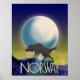 Norway Wolf Poster print art of a cute but scary Wolf walking in front of a beautiful large full Moon.
