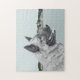 Norwegian Elkhound at Village Painting - Dog Art Jigsaw Puzzle