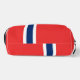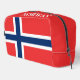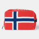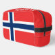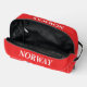 Norwegian flag personalised toiletry travel kit bag. Custom red Dopp Kit design. Personalise with name or monogram optionally. Colours can be changed too. Scandinavian pride.
