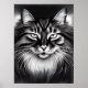 Norwegian Forest Cat in Black and White Poster