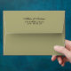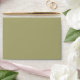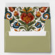 This envelope design features a moss colour on the front and back and a rosemaling pattern on the inside. You can personalise with your name and return address on the back flap.