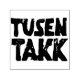Digitalised black and white lino cut print of lettering saying "Thank You" in Norwegian ("Tusen Takk").