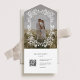 Introducing our elegant and traditional wedding invitation design with a photo, adorned in pure white with an intricate floral border. This exquisite design exudes a timeless charm, capturing the essence of romance and celebration.