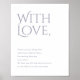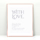 A thoughtful and cheery wedding sign that says "Thank you for being here, with hearts full of cheer
