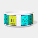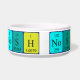 Nosh spelled out as No S H (Nobelium Sulfur Hydrogen) on a pet bowl for the scientist in your best friend.