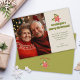 Nostalgic Christmas card created using a hand painted watercolor poinsettia in a whimsical style. Personalise the photo and the text for a unique holiday greeting. Original art by Leslie Larson