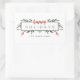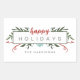 A fun, modern style with leaves and swirls in greens and rusty red, with a floral element and dots in rustic blue. Reads "happy HOLIDAYS" in an elegant font. Easy to personalise for use as gift tags, envelope seals, and more!