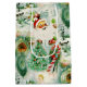 It has a repeating pattern with a soft, faded color palette, mostly in shades of mint green, white, and muted reds/golds.