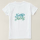 The t-shirt features the text "Nostalgic Melody" in a multicolor design. The letters are a mix of bright and muted colours, creating a layered and visually interesting design.