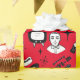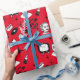 Birthday or Anniversary fifties themed gift wrap with graphics of vinyl albums, musical notes, a couple dancing, milkshakes, drive in sign, tvs hotdogs and other fun retro images. Black and white with a teal background.