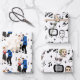 Birthday or Anniversary fifties themed gift wrap with graphics of vinyl albums, musical notes, a couple dancing, milkshakes, drive in sign, tvs hotdogs and other fun retro images.