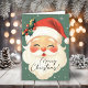 This cute Christmas card captures the timeless charm of the holiday season with a nostalgic image of Santa Claus's adorable face, beautifully set against a soft green background sprinkled with shimming white stars that evokes a sense of wonder and joy. Inside, you can personalise your card by writing a heartfelt message (or leave the message as is) and add your name to spread personalised cheer to your loved ones. Ideal for those who cherish the classic spirit of Christmas, this card is a delightful way to express your festive wishes.