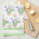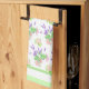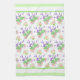 A pretty kitchen towel, or tea-towel, with a pattern of pink Roses, creamy white Mock Orange Blossom and purple Lavender with a green and white border, from a handpainted watercolour design by Judy Adamson. You can change the white background to a different color if you wish.