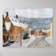 WINTER IN ENGLISH SNOW COVERED VILLAGE. WATERCOLOUR
