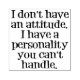 Let the world know you don't have an attitude problem. It's your personality. Reads: I don't have an attitude; I have a personality you can't handle.