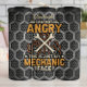 This graphic features a humourous phrase for mechanics: "I AM NOT ANGRY THIS IS JUST MY MECHANIC FACE". It's set against a dark, industrial background of hexagonal mesh. The text is stylised in orange and white, with crossed wrenches and gears, creating a bold and relatable design for automotive professionals or enthusiasts.