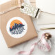A stylish sticker featuring a mountain sunrise and pine silhouette with the quote “Not Every Wanderer Is Lost.” Perfect for decorating laptops, water bottles, journals, and travel gear.