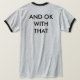 The product was as advertised. The message is succinct and is an eye-catcher. This shirt gets a heap of feedback from onlookers. Most ask you to stand still while they finish reading the definition. They then either give you the thumbs-up or nod any walk away. Either way, its a real conversation starter and so far, no one has disagreed enough with the print to verbalize. The material is fairly light, but the print is stable enough to withstand washes and some activity. A fair deal. Readable and durable.