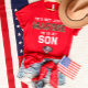This patriotic He's / She's Not Just A Marine, He / She Is My Son (Daughter, Grandson, etc.) with personalized name US flag dog tags t-shirt or top of your choice is designed for a proud military family member - perfect for boot camp graduation, going away or welcome home party! **Designed by a proud military Mom!** Makes a great gift for special occasions like birthday, holidays, Mother's Day or Father's Day. Easily customize for male or female Marine, dog tag first or last name, and family relationship - in adult, kids, and baby sizes! Other armed forces branches are available in my Zazzle storefront (click on "FigLilyCo--Military" shop link in the right-hand corner of this page, and again on my shop name there, and head to the "T-Shirts & Clothing" category to see more! Custom design requests are ALWAYS welcome, click the "message" button, or email directly at: contact@figandlilyco.com. From this proud military family to you and yours, we Thank You for the service and sacrifice of your brave loved one protecting our freedom!! ♥ ♥ ♥