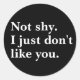 Not shy. I just don't like you funny sayings Classic Round Sticker