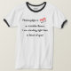 The product was as advertised. The message is succinct and is an eye-catcher. This shirt gets a heap of feedback from onlookers. Most ask you to stand still while they finish reading the definition. They then either give you the thumbs-up or nod any walk away. Either way, its a real conversation starter and so far, no one has disagreed enough with the print to verbalize. The material is fairly light, but the print is stable enough to withstand washes and some activity. A fair deal. Readable and durable.
