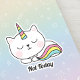 Not Today Unikitty Sticker - Those days when it's best not to ask. We all have them and the star of our store Unicorn kitty knows just how to get the message across. Let everyone see your mood and funky taste with our Not Today Cute Unikitty Sticker. "Meowgical!" Wording on the sticker can be customised to any phrase you desire.