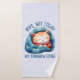 Capture the essence of introversion with this adorable bath towel featuring a sleepy cat and the humourous phrase, 'Not today. Not tomorrow either.' Perfect for cat lovers and introverts alike, this charming artwork celebrates quiet solitude and the joy of embracing your inner homebody.
