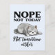 Embrace the charm of a cute feline peacefully dozing off, perfectly capturing the mood of introverts and those who appreciate the value of quiet solitude. Featuring the humourous phrase 'Not today. Not tomorrow either,' this postcard is a playful reminder that taking a break is sometimes the best plan. Ideal for cat lovers and anyone who values cosy moments and witty humour.