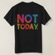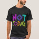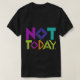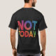 This bold t-shirt design features the phrase "Not Today" in a colourful, eye-catching display. (Describe the specific style from the prompt you chose - e.g., "The text is a graffiti-style font with a rainbow colour gradient" or "Each letter is a different bright colour with a speech bubble popping out behind it"). It's a great way to make a statement and show you mean business!