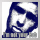 Artistic portrait of young male making sad eye contact. Digital art, blue and silver. Text "I'm not your Bob".