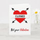 This Valentine’s Day card makes a strong statement with bold imagery and clear wording. At the center is a bright red heart pierced by four black arrows, forming a sharp “CLOSED” symbol across the heart in white and black lettering. The white background keeps the focus on the graphic, making the message easy to read at a glance. Below the heart, the phrase “Not your Valentine” appears in a mix of flowing black script and vivid red text, adding contrast and personality. The combination of red, black, and white creates a striking look that communicates independence and boundaries with humor. This card is ideal for anyone who wants to opt out of traditional romance while still marking the occasion in a clever way.❤️💌🍫. S