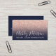 An elegant modern, stylish notary business card with elegant modern simple hand lettering style typography in white on a faux rose gold glitter and navy blue trendy and elegant background. all text is customisable, add your social media.