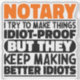 Funny Notary Sayings "Notary I Try To Make Things Idiot Proof But They Keep Making Better Idiots". Grab this Funny Notary design as a funny gifts for an awesome mum, dad or friend.