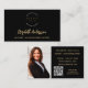 An elegant and glamourous business card on a black background. Elegant hand lettered style script. Personalise and add Your name, text, profile photo, logo, contact info and your own QR code to your website address.