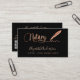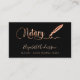 An elegant business card on a black background and a rose gold signature signing pen. Elegant hand lettered style script. Personalise and add Your name, title, contact info and your own QR code to your website address.