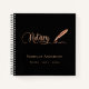 A chic black background, decorated with a feather pen. Personalise and add a name and title. Golden text: Notary