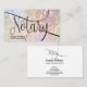 A modern, stylish notary logo business card with calligraphy script typography and feather pen. iridescent glitter background. Ideal for notary, professionals, lawyers, loan agents, mortgage agents....